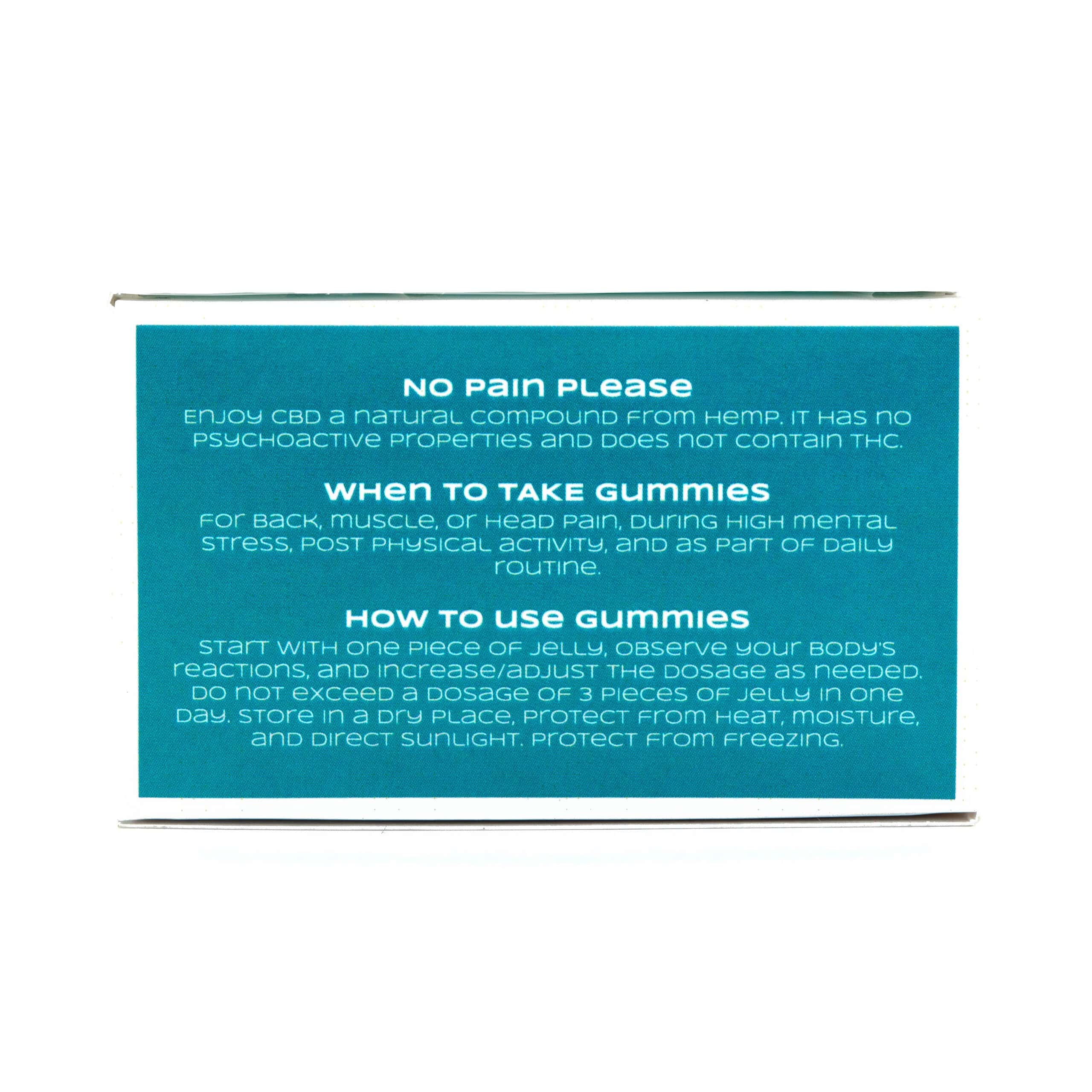 Dosage: 20 mg CBD in one piece of jelly. Do not exceed a dose of 3 pieces of jelly in a single dose or in one day.